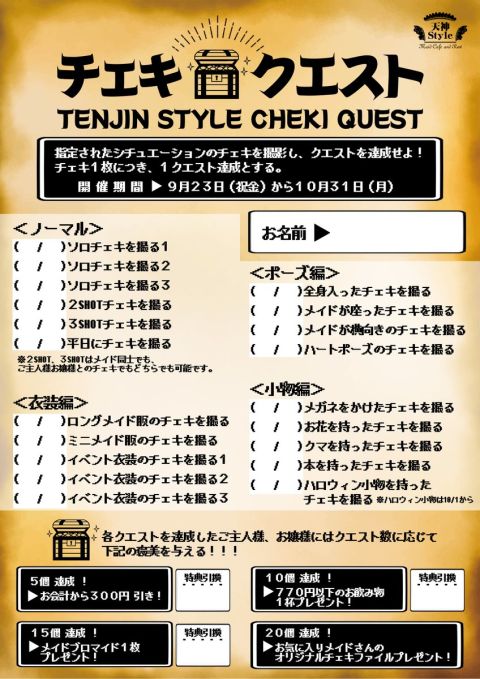 💎天神Styleチェキクエスト💎 指定されたシチュエーションのチェキを撮影し、クエストを達成せよ!! ◆開催期間◆ 9月23日(祝金)~10月31日(月) 💎詳細はこちら https://t.co/WjH4QSnbEx https://t.co/xijLJ5pVrO
