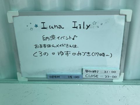 本日8月24日(土)は「納涼イベント」です。 お留守番メイドは、 14時~ くろの、ゆず 17時~ みづき です。 皆様のお帰りをお待ちしております。 #ルナリリー #メイドリフレ #メイド #大阪日本橋 https://t.co/gtoJf5Gb7M