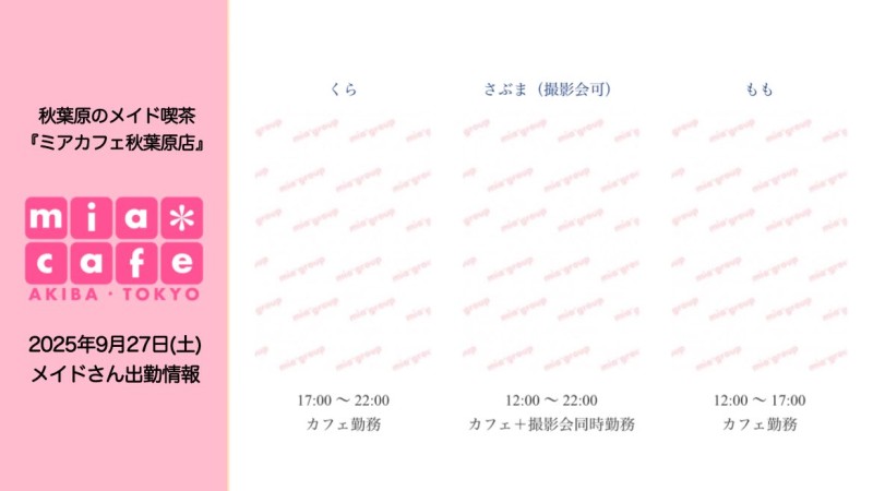 👑本日9月27日(土)のミアカフェ秋葉原店