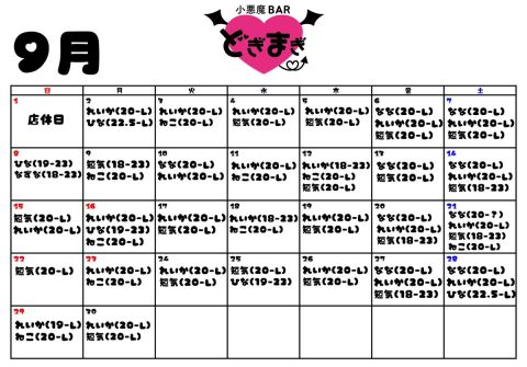 🖤9月出勤予定表🖤