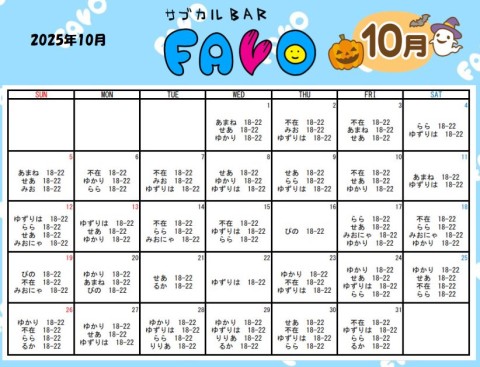 🎀10月のシフト更新🎀