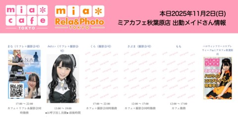 👑本日11月2日(日)のミアカフェ秋葉原店