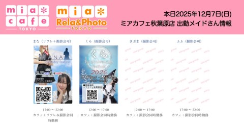 👑本日12月7日(日)のミアカフェ秋葉原店
