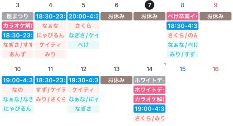 ◽︎3/14(金)…ホワイトデーイベント🤍✨&カラオケ解放デー🎤🎶