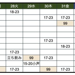 | 営業時間 | 18:00〜 | ||||||||||||||