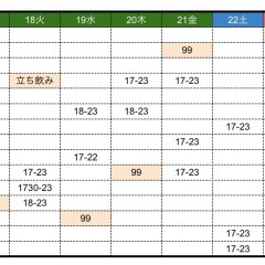 | 営業時間 | 18:00〜 | ||||||||||||||
