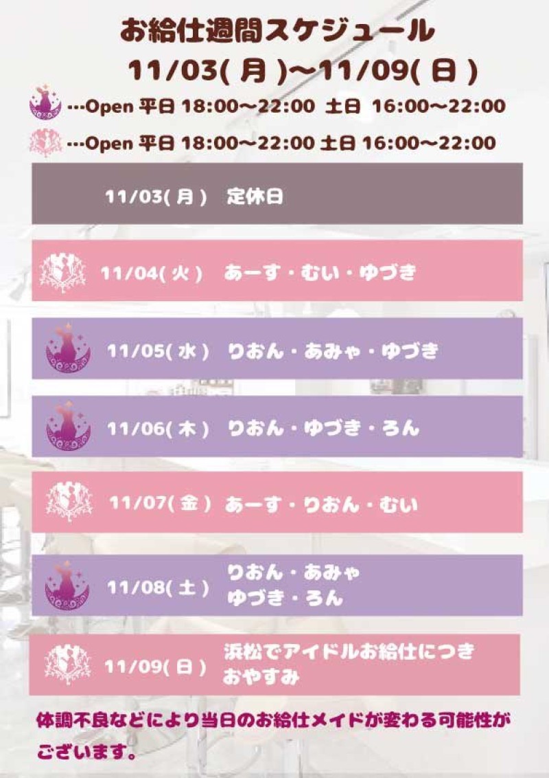 【お給仕週間スケジュール】