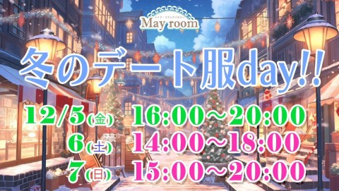 ❄冬のデヌト服dayのお知らせ☃ 【日皋】 12/5(金)16-20 ひめか♡secret maid〇人? 6(土)14-18《お出かけ䌁画思い出配信》 のの♡ひよこメむド(ももな)♡s 〇人? 7(日)15-20 ひよこメむド(るみ15-19)(らん16-20) ※あいか予玄のみ メむドリフレク゜ロゞヌ May room https://t.co/CVNoVG0G0m https://t.co/6xuFRRmcQV