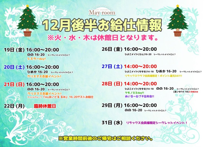 🎄2025幎12月16日31日 営業日メむドお絊仕情報🀶🏻