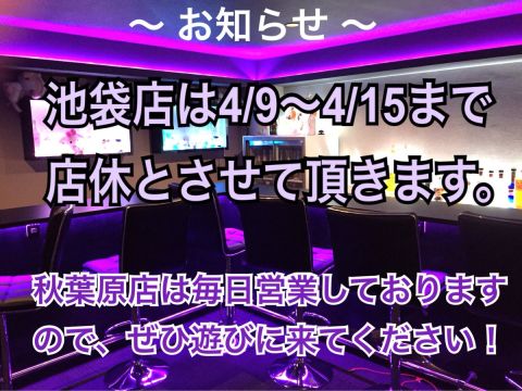 池袋店は4/9〜15まで店休となります。16日以降の営業は今のところ未定なので決まり次第お知らせ致します。