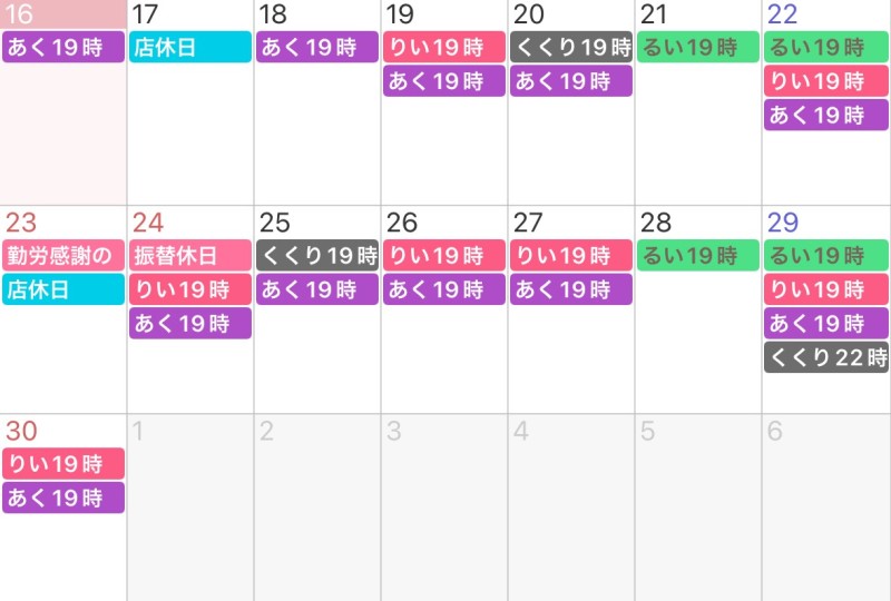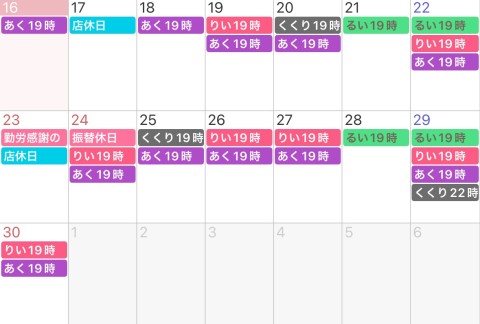 11月後半の出勤予定です。