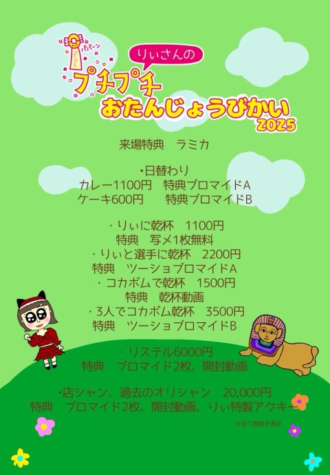 りぃさん生誕です!㊗️17時まで!🙏 本日は、 ・ポイント使用不可(貯めることはできます) ・カラオケは状況によってお断りする場合がございます。先にキャストに確認お願いいたします。 ・なまもの(食べ物、お花)の差し入れは持って帰れないためお控えください。 ご帰宅お待ちしております‼️ https://t.co/FrG68VmDpb